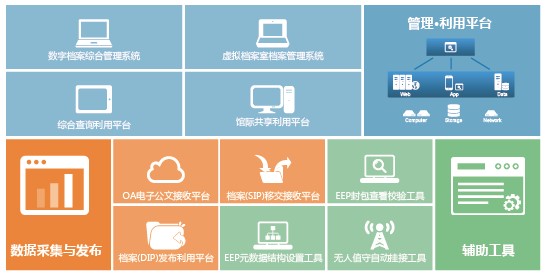 產品按照用戶不同行業分為省級數字檔案綜合共享利用平臺、綜合性檔案館、省級立檔單位、地市級立檔單位、集團性企業、紀檢行業、通信行業、高校教育等行業版本。系統集成了電子文件及其元數據捕獲、收集整編、室藏檔案、歸檔審核、查詢利用、跨館出證等各大功能。